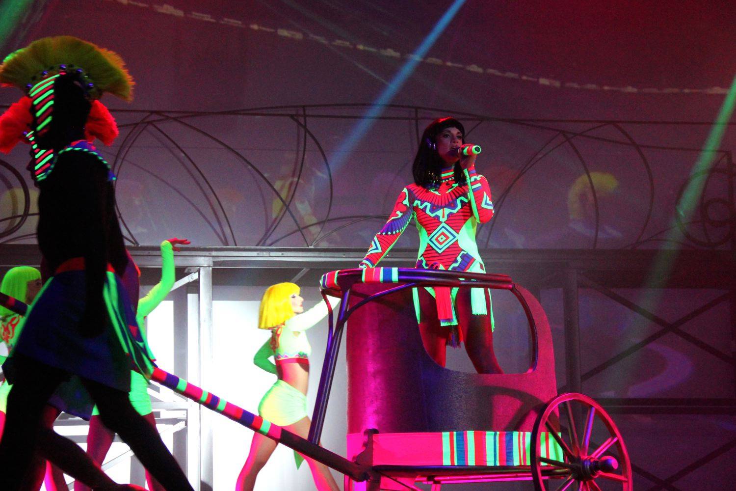 Beyoncé, Sia, Britney Spears... Avec en arrière scène un écran géant et des jeux de lumières intenses. Un