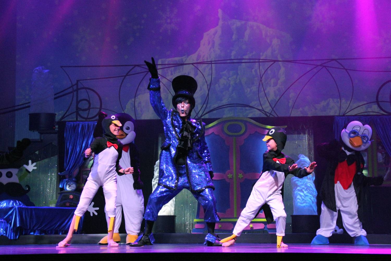Alors, Monsieur Paillettes invite le Papa Pingouin et toute sa famille, ses princesses préférées, la Reine Des Neiges avec Anna et Olaf, Jasmine et le prince Ali, la Petite Sirène avec Sébastien le crabe et ses amis poissons, Alvin et les Chipmunks, Pinocchio, Stuart le Minion, ainsi que tout les animaux du Roi Lion. Sans oublier Strass, son inséparable chihuahua.